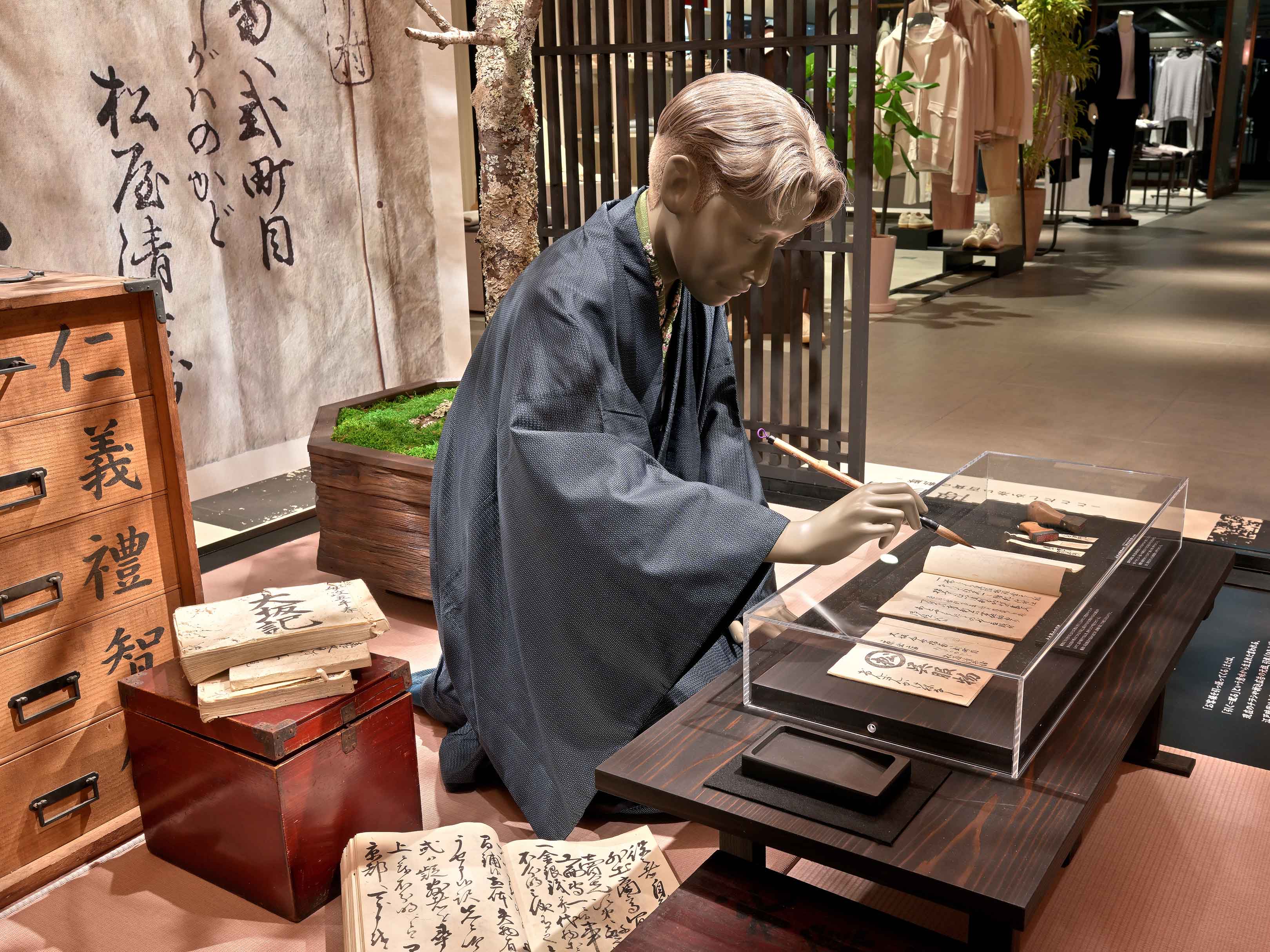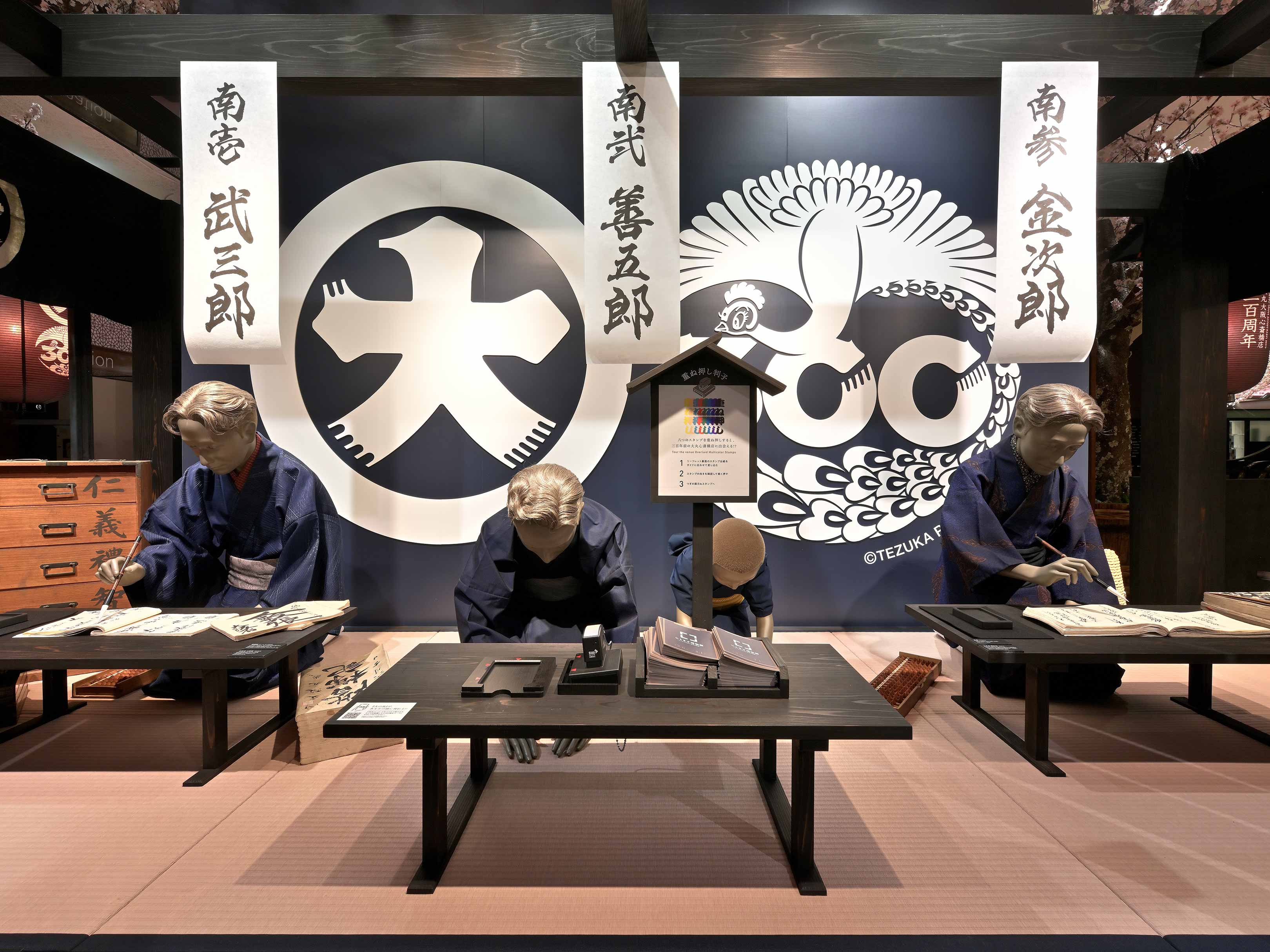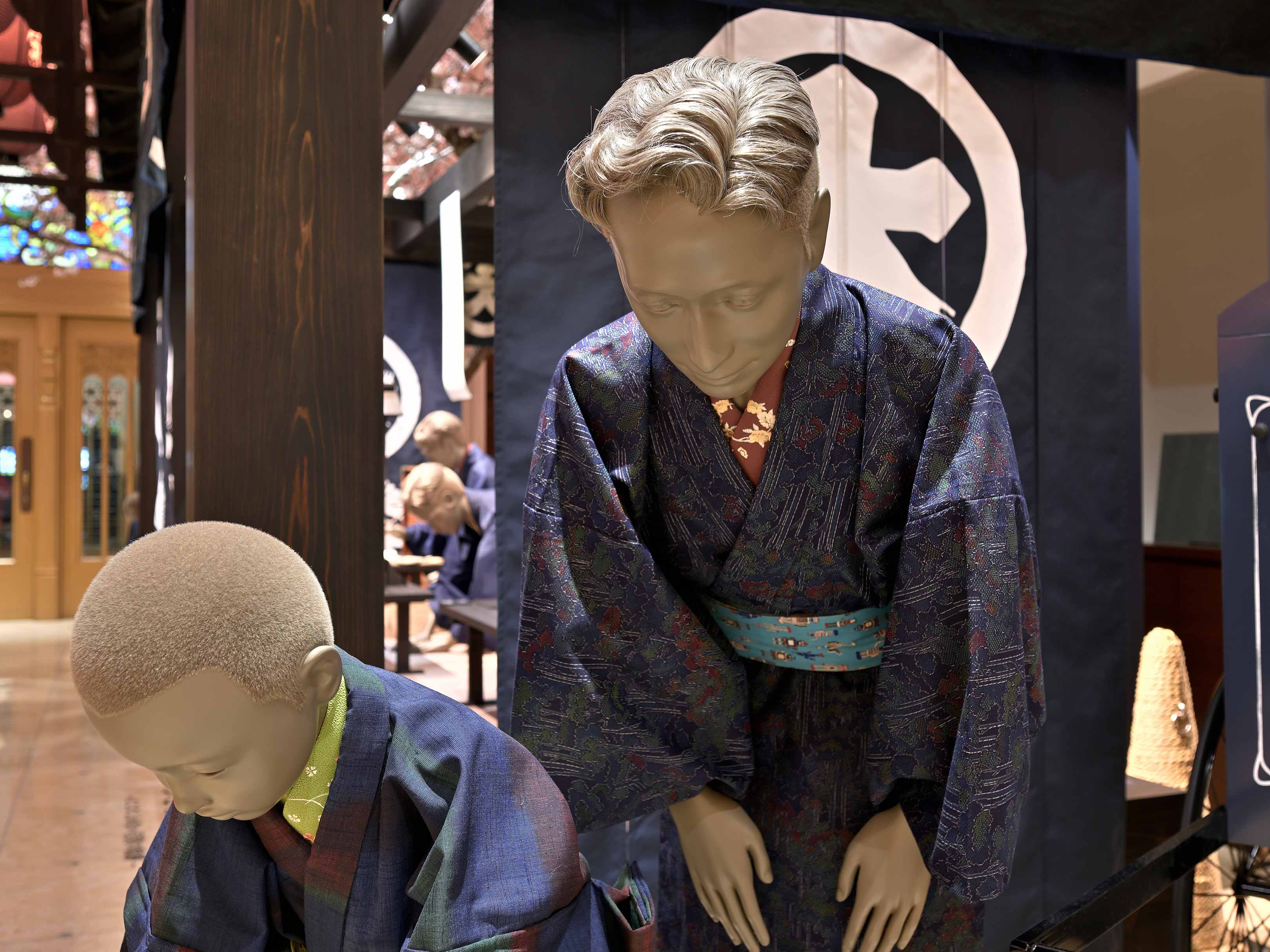 大丸心斎橋店の開業300周年を記念し、「ずっと、あきない。」をスローガンに掲げた企画において、当時の情景を再現する空間演出の一環として、創業者である下村正太郎氏をモデルとしたマネキンを製作しました。本製作では、お辞儀をする姿、正座で礼を尽くす姿、書物に向かう姿の3つのポーズを採用。創業当時の精神性や所作、佇まいを丁寧に表現することで、来場者に歴史的背景を感じていただける演出を実現しました。マネキン製作では3Dデータでモデリングを行い、3Dプリンタにて原形を製作。空間全体のストーリーテリングを補完する要素として、視覚的な再現にとどまらず、企業の理念や文化を伝える役割を担っています。